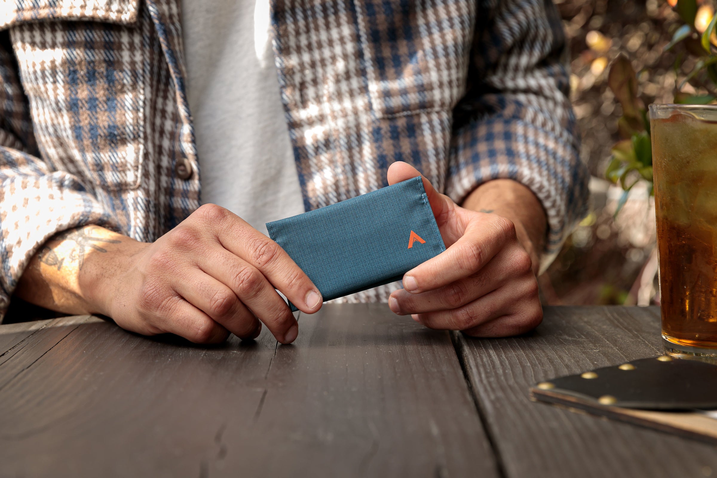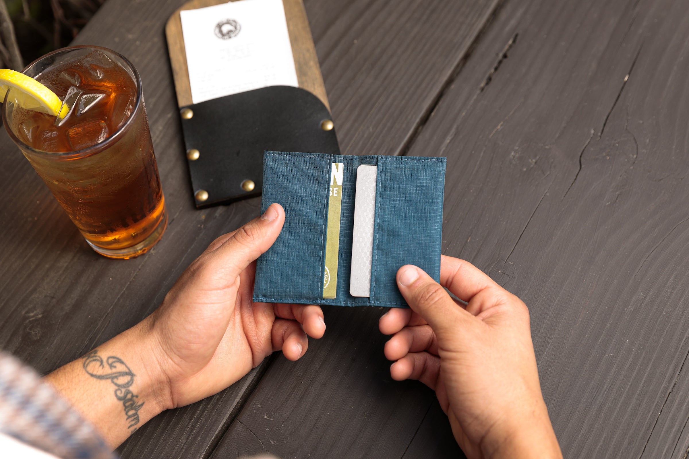 Made with water-resistant, bluesign®-certified ripstop nylon, it’s extremely lightweight, yet durable in any environment. With its minimalist dimensions of just 3.875” x 2.25” x 0.1” (X cm x X cm x X cm), it’s as discreet as ever.
