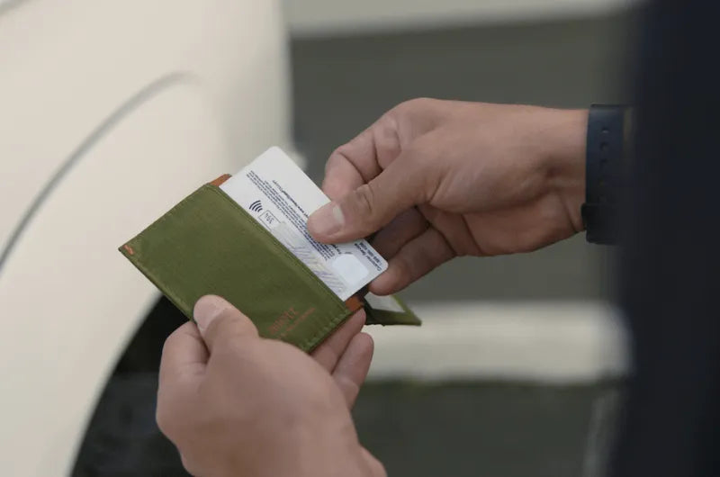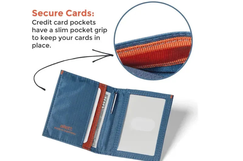 Slim and minimal without sacrificing space, you can fit up to 10 cards and folded cash in the Hybrid Card Wallet, and use the clear ID window for easy access to your identification with a quick flip. This card holder wallet also has a built-in sleeve for the Allett Micro Pen, so you're packed up and ready for anything.We built this card holder wallet with bluesign®-certified ripstop nylon to give it it's impossibly slim profile. Plus the tearproof and weatherproof ripstop nylon gives the Hybrid Card Wallet the durability and lasting quality that will let you take it on adventures for years to come.